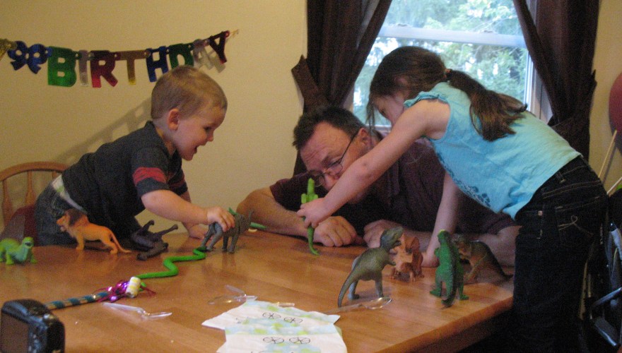 I hope you had an awesome Christmas and New Year’s like Lady Linda and I did. I don’t remember if I told you, but last year a week before Christmas our son and his family lost the house they were renting in a fire. Thankfully no-one was hurt, but they lost everything. Well this year, they got a great Christmas present. They were able to find a new home to rent and they moved in this past weekend. We haven’t had a chance to visit yet, but we plan to this weekend. The photo above is one from a few years ago – me playing dinosaurs with two of my grandkids. I found it and wanted to share it with you.