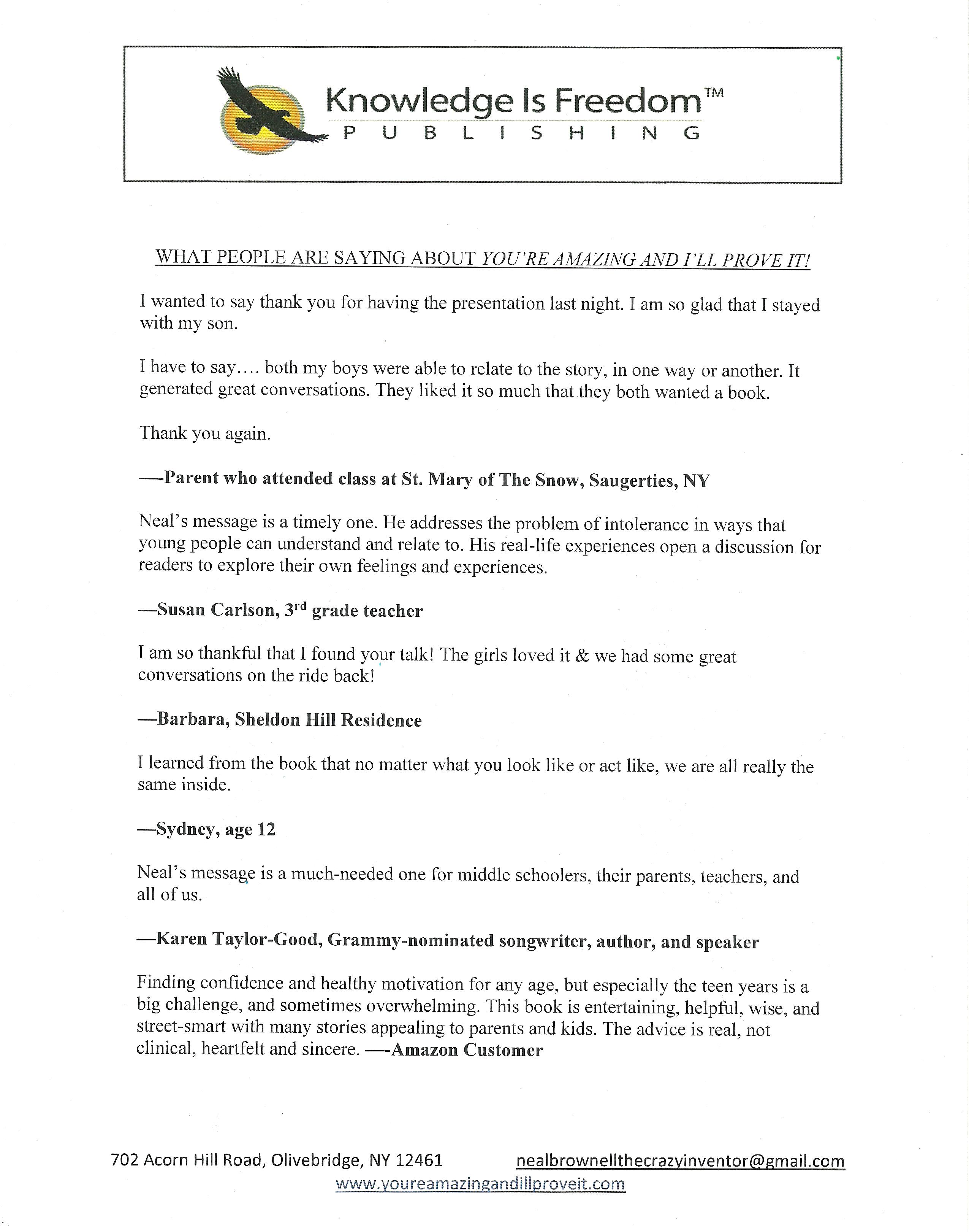 The techniques in You’re Amazing And I’ll Prove It! are so effective that after our first book show organizations started calling us asking us if we would come teach these techniques.